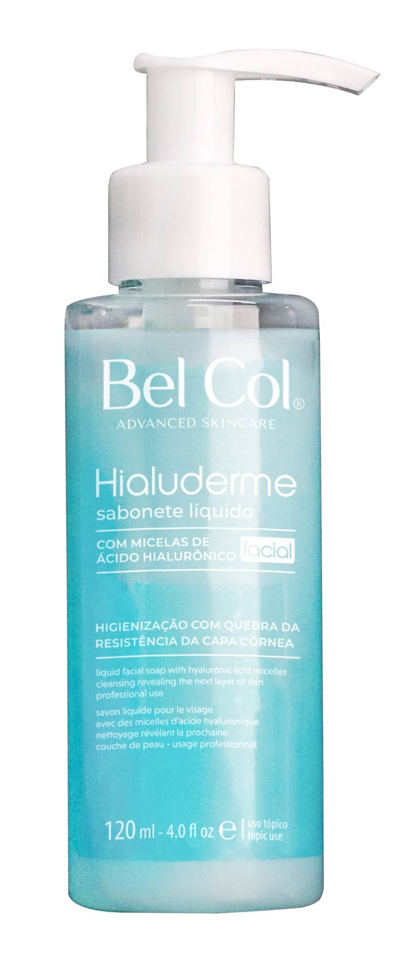 Sabonete líquido com micelas nano particuladas de Ácido Hialurônico e ácido glicólico, cuja função e higienizar e quebrar a resistência da capa córnea. Aplique uma porção do Sabonete Líquido Hialuderme em toda a face, faça movimentos circulares e remova com auxílio de algodão umedecido em água.
